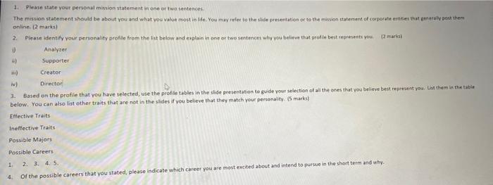 Solved 1 Please State Your Personal Mission Statement Chegg Com